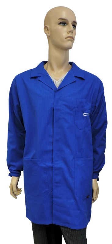 Jednoduše střižený antistatický ESD plášť s 66 % bavlny je výbornou volbou pro každodenní nošení nebo pro návštěvy kvůli překrytí obyčejného oblečení. Antistatickou vlastnost zajišťuje uhlíkové vlákno, které v látce tvoří mřížku o velikosti 10x10 mm. Antistatický ESD plášť je certifikován na normu ČSN EN 61340-5-1.