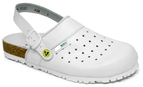 ESD pánské sandále - bílé Obuv určená pro elektrotechnický průmysl, zdravotnictví a jiné obory činnosti, kde hrozí poškození součástek a zařízení, nebo zkreslení měřených hodnot, elektrostatickým výbojem.Elektrický vnitřní odpor obuvi je 750kOhm až 35MOhmu, v souladu s normou EN61340-4-3.Obuv je op... celý popis