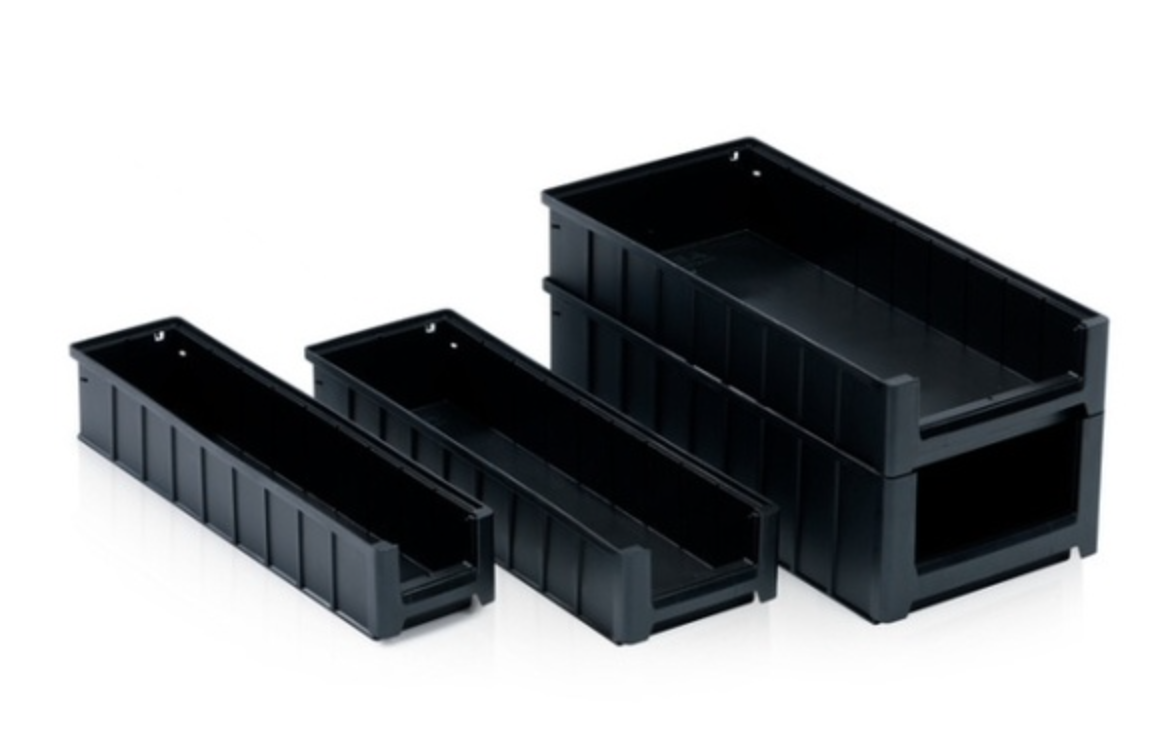 Ukládací regálové boxy jsou ideálním řešením pro uskladnění, manipulaci elektronického zboží. Vynikající přehlednost je zaručena, pomocí integrovaných držáků etiket . Efektivní stohovatelnost je zaručena robustní konstrukcí boxů. Velmi vhodné do regálů a karuselových zakladačů. Ergonomický tvar umožňující pohodlnou manipulaci. K dispozici v různých výškách a délkách.
